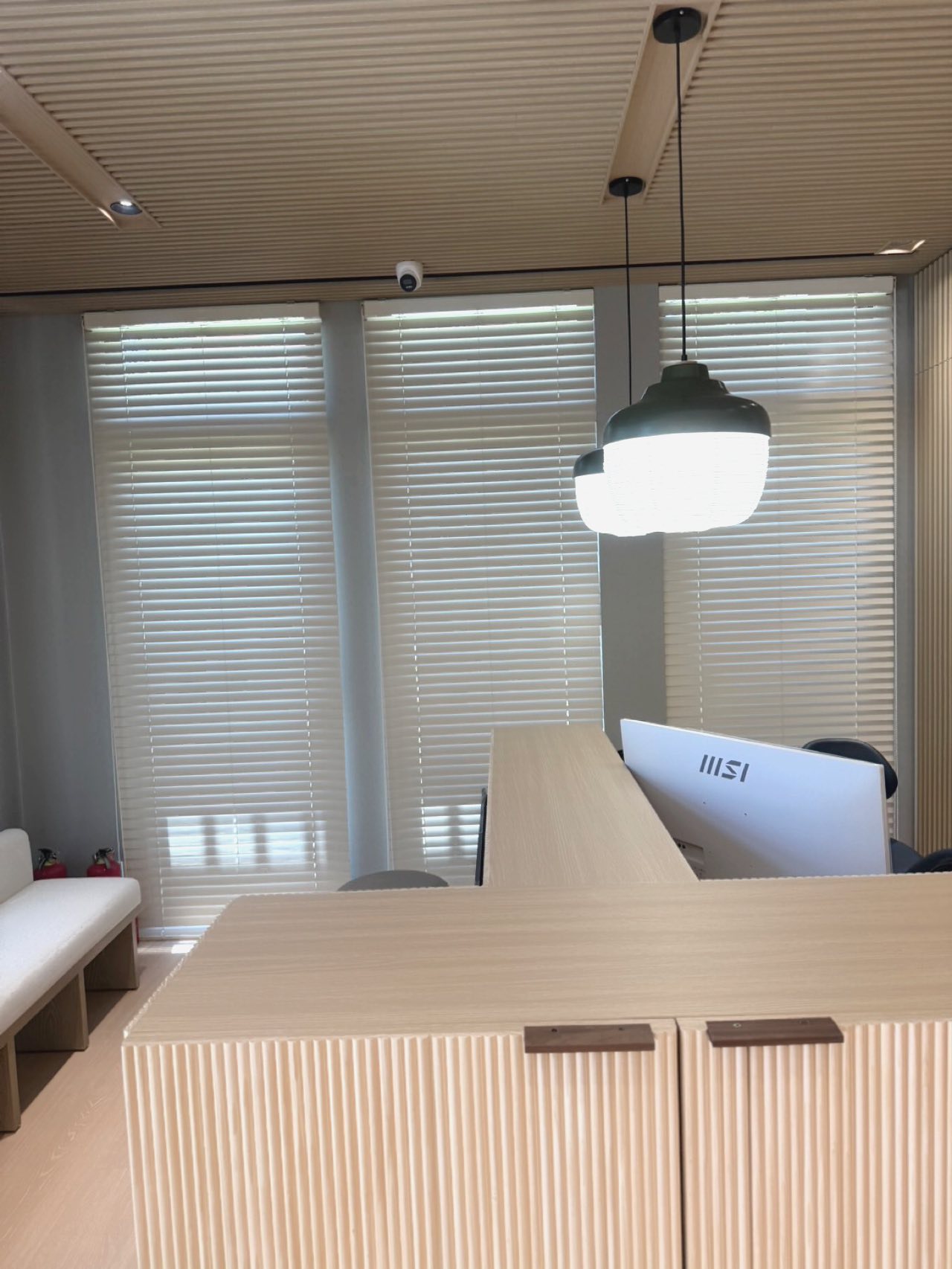 這次選用質感進口壁紙,搭配50mm木百葉窗,營造明亮又溫馨的看診環境✔️
